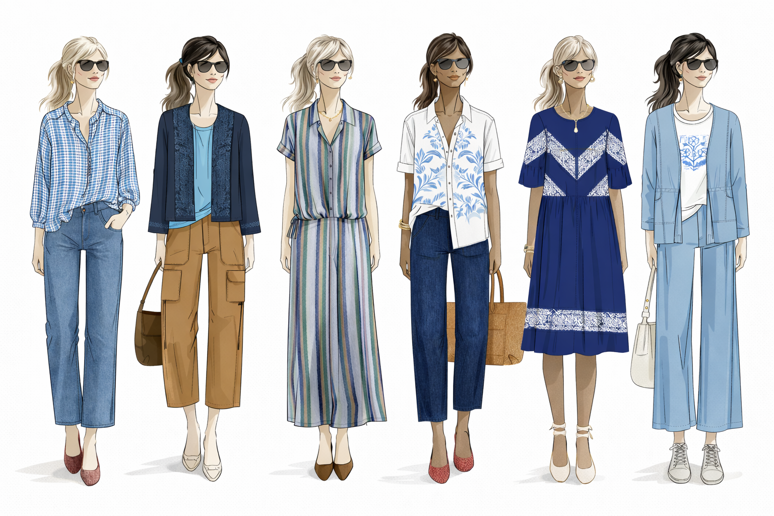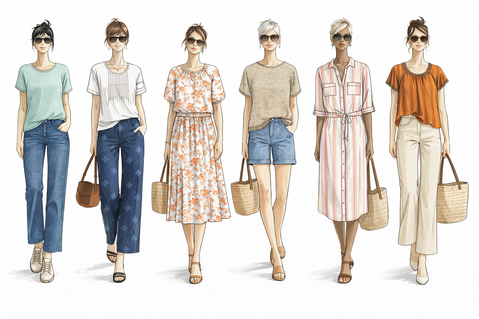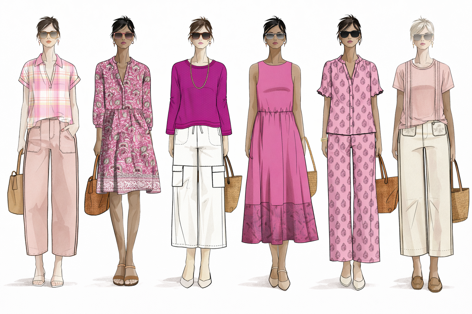 Inspired by the vibrant spirit and artistry of India, this collection celebrates color, craft, and effortless summer dressing. Breezy linen blends, airy gauze fabrics, and sun-washed prints evoke a sense of wanderlust and warmth. From hand-drawn florals to intricate border motifs, “A Passage to India” brings an easy global elegance to the everyday—light, bright, and beautifully free-spirited.